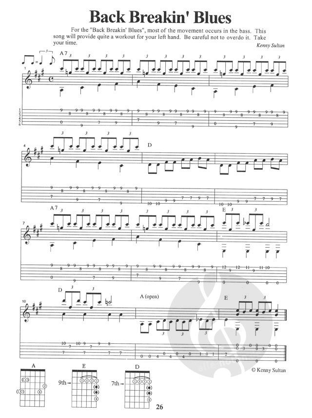 This book for intermediate-level guitarists is a follow-up to Kenny's Introduction to Acoustic Blues. It covers blues in five different keys and positions, and incorporates slide or bottleneck playing in both open and standard tunings. All songs are primarily fingerstyle with a monotone bass used for most. The accompanying 70-minute CD features performances of every example and song, played slowly then up to speed to facilitate learning.