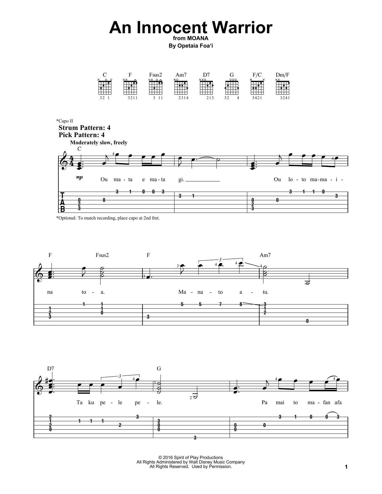 Easy Guitar Tab (from Moana)