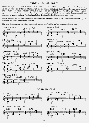 This is a very comprehensive text that combines theory, harmony and voicing material with emphasis placed on voice leading. Although this book's primary focus is on four-note chord voicings on the middle strings of the guitar, much of the knowledge conveyed here can be appreciated and used by all jazz musicians, not only guitarists. Topics covered include: Tensions, Voice Leading Chord Scales, Enharmonic Chordal Substitutions, Fourth Voicings, Chromatic Guide Lines, Triad Over Bass Voicings, and much more! The best part of this book, however, is the unique and practical way the author takes modern harmonic concepts and shows you how to apply them in real music situations! Written for the intermediate to advanced music theory enthusiast who wishes to master this facet of music.
