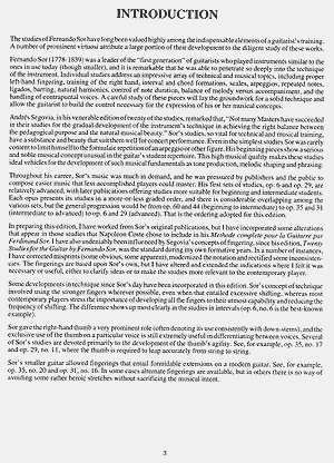 The guitar studies of Fernando Sor (1778-1839) have long been valued highly among the indispensable elements of a guitarist's training. A number of prominent virtuosi attribute a large portion of their development to the diligent study of these works. Sor's studies address an impressive array of technical and musical topics, including proper left-hand fingering, training of the right hand, interval and chord formations, scales, arpeggios, repeated notes, ligados, barring, natural harmonics, control of note duration, balance of melody versus accompaniment, and the handling of contrapuntal voices. A careful study of these pieces will lay the groundwork for a solid technique and allow the guitarist to build the control necessary for the expression of his or her musical concepts. In preparing this edition David Grimes worked with Sor's original publications, but incorporated some alterations that appear in those studies that Napoleon Coste chose to include in his Methode complete pour la Guitarre par Ferdinand Sor. Furthermore, Mr. Grimes has corrected misprints, modernized the notation and rectified some inconsistencies. Finally, some developments in technique since Sor's day have been incorporated in this edition.