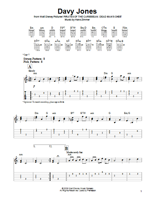 Easy Guitar Tab (from Pirates Of The Caribbean: Dead Man's Chest)