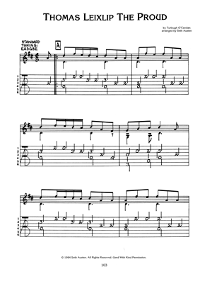 Presenting 45 melodies composed by the blind Irish bard and harpist Turlough O'Carolan arranged by such guitar greats as Dave Evans, Davey Graham, El McMeen, Duck Baker and many others. As these melodies lend themselves particularly well to guitar settings, O'Carolan's compositions have captured the imagination of guitarists world-wide. This compilation divides the tunes into three categories: Airs and Dance Tunes, Tunes for Patronage, and Laments. Written in standard notation and tablature. Includes access to online audio.