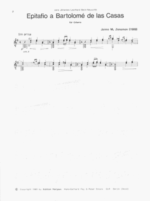 Dem spanischen Priester Bartolomé de las Casas, der sich zur Zeit der Conquistadores für die Rechte der südamerikanischen Indiobevölkerung einsetzte, wurde dieses einfühlsame und beeindruckende Werk gewidmet: Ein lyrisches Stück von hohem klanglichen Reiz.