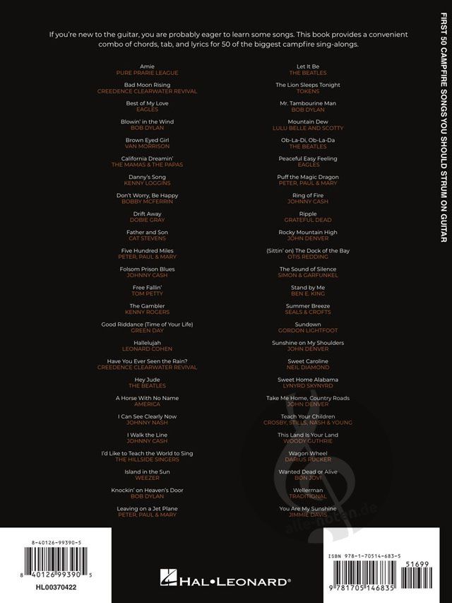 Wenn du neu auf der Gitarre bist, möchtest du wahrscheinlich unbedingt ein paar Lieder lernen. Dieses Buch bietet eine praktische Kombination aus Akkorden, Tabulatur und Texten für 50 der größten Lagerfeuer-Songs, damit du deine neuen Gitarrenkenntnisse gleich einsetzen kannst!