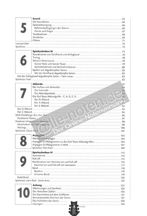 Jeder Aspekt wird von Grund auf erklärt. Mit über 300 Licks, Riffs und Übungen geht es dabei stets praktisch zur Sache. Schritt für Schritt werden die notwendigen Solo- und Rhythmustechniken vorbereitet.