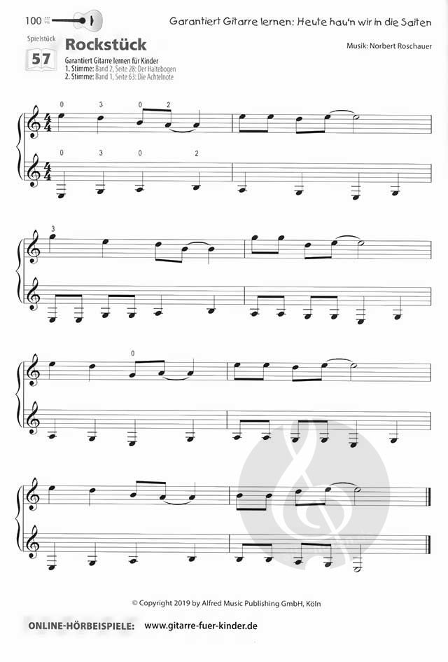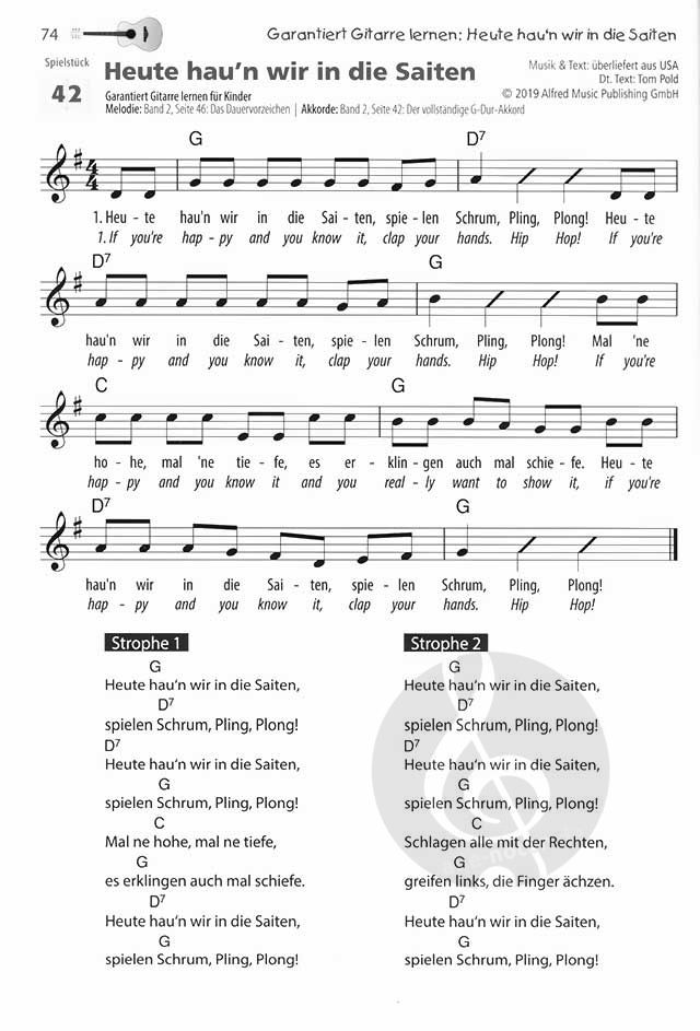Ein paar Quizaufgaben musst du natürlich auch lösen und mit der beiliegenden CD kannst Du Dir anhören, wie die 75 Lieder auf der Gitarre klingen sollen. Du hast keinen CD-Player zur Verfügung? Kein Problem! Die Hörbeispiele stehen auch online zur Verfügung. Olli, die Gitarrenmaus. wünscht dir viel Spaß und Erfolg mit 'Heute hau'n wir in die Saiten!'