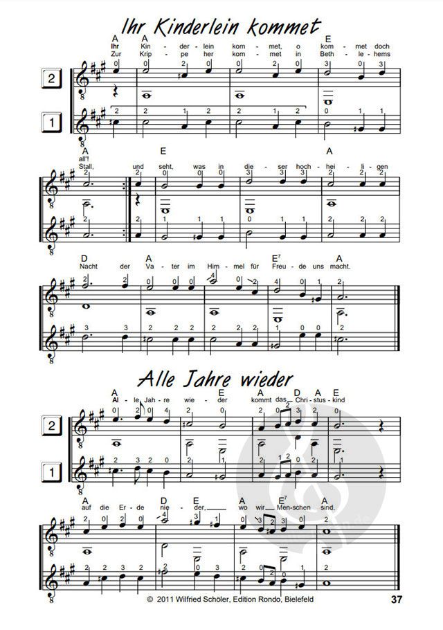 Weihnachtslieder für 1-2 Gitarren in vier verschiedenen Schwierigkeitsstufen, für Anfänger und Fortgeschrittene