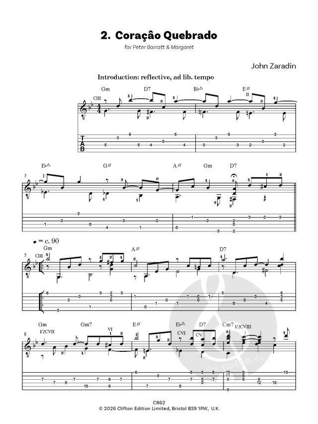 Dedications' ist eine Sammlung von zwölf Fingerstyle-Solos für Gitarre in Jazz- und Latin-Stimmungen. Außerdem enthalten: hilfreiche Anmerkungen zu den Partituren, Fingersätzen, ein Glossar der Akkordsymbole und Hinweise zu "rasgueados". Enthält Fingersatz, Tabulatur und Hintergrund-Akkordsymbole.