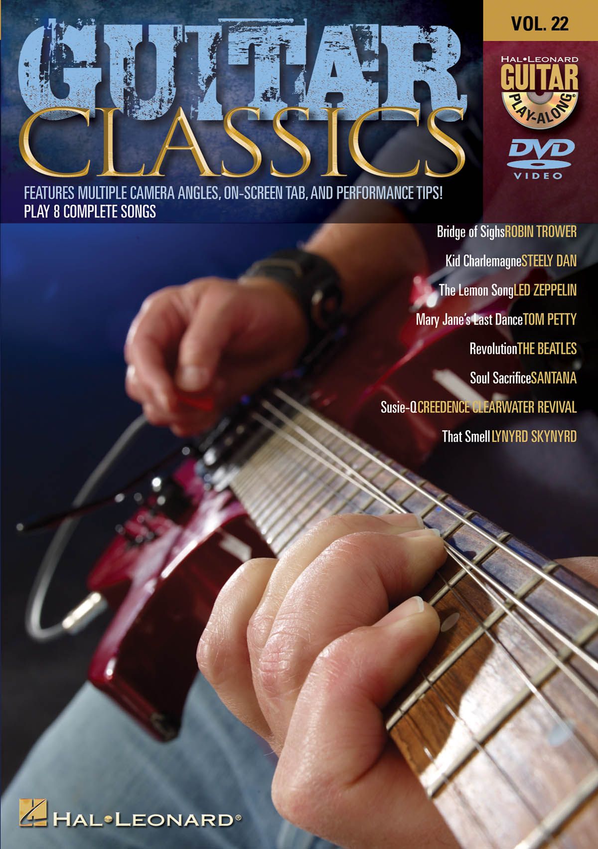 The Guitar Play-Along DVD series lets you hear and see how to play songs like never before. Just watch, listen and learn! Each song starts with a lesson from a professional guitar teacher. Then, the teacher performs the complete song along with professionally recorded backing tracks. You can choose to turn the guitar off if you want to play along or leave the guitar in the mix to hear how it should sound. You can also choose from multiple viewing options; fret hand with tab, wide view with tab, pick & fret hand close-up, and others. Features 8 legendary tunes for guitar: Bridge of Sighs - Kid Charlemagne - The Lemon Song - Mary Jane's Last Dance - Revolution - Soul Sacrifice - Susie-Q - That Smell.