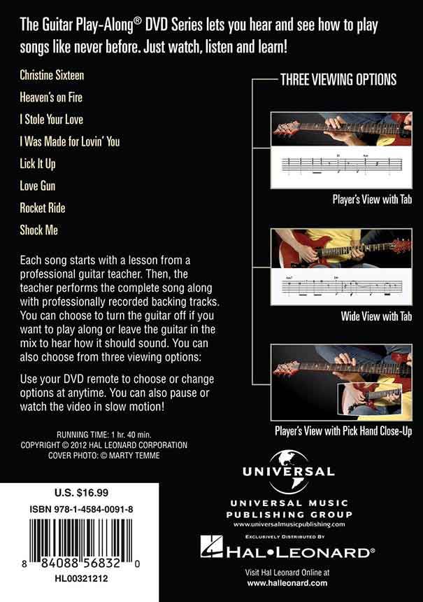 The Guitar Play-Along DVD series lets you hear and see how to play songs like never before. Just watch, listen and learn! Each song starts with a lesson from a professional guitar teacher. Then, the teacher performs the complete song along with professionally recorded backing tracks. You can choose to turn the guitar off if you want to play along or leave the guitar in the mix to hear how it should sound. You can also choose from multiple viewing options; fret hand with tab, wide view with tab, pick & fret hand close-up, and others.
