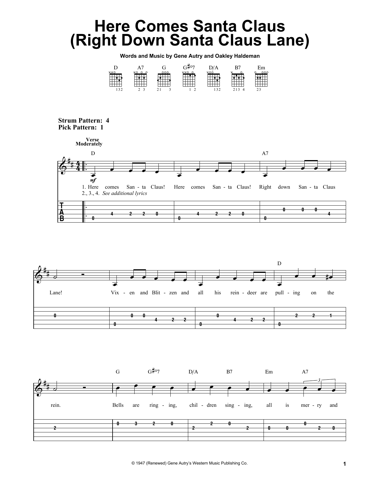 Easy Guitar Tab (Right Down Santa Claus Lane)