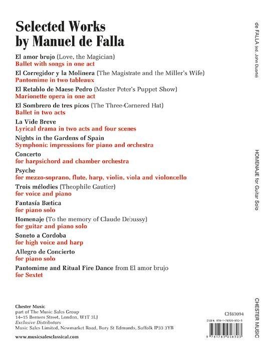 Manuel De Falla's Homenaje Le Tombeau De Claude Debussy for solo Guitar. 2014 revised edition by John Duarte.