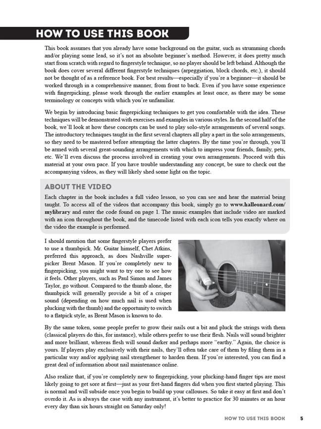 Build your guitar fingerpicking skills with this excellent book and video teaching system! In How to Fingerpick Songs on Guitar, you will learn fingerstyle techniques from the ground up with exercises, songs, and videos designed to lead you into a whole new world of guitar enjoyment. Along the way, you will also explore how to create solo-guitar arrangements of your favorite songs using a variety of methods. Plus every technique, topic, playing example, and song in the book is demonstrated for you on video! The video is accessed online, for download or streaming, using the unique code inside each book.
