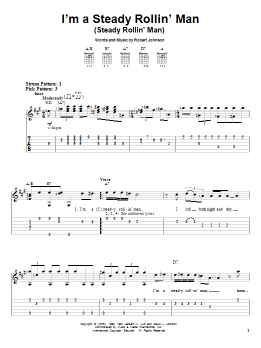 Easy Guitar Tab (Steady Rollin' Man)