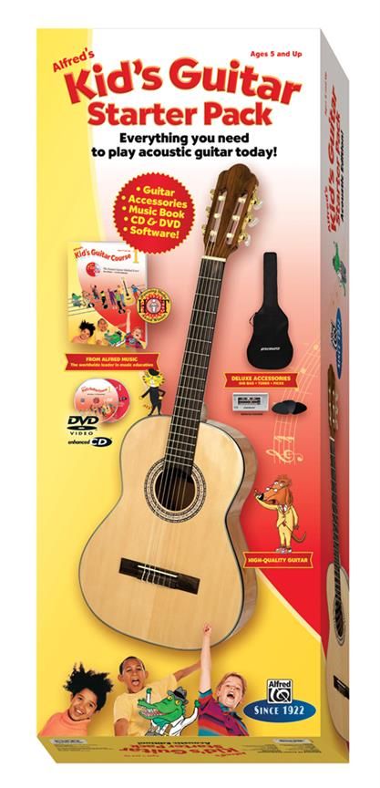 Everything is included for your child to start playing guitar today! The instrument is a 3/4 size Firebrand high-quality instrument that sounds great and will last for years. It features a beautiful natural finish and nylon strings that are easier for young beginners to play. Included are a gig bag, an electronic tuner, and the award-winning Alfred's Kid's Guitar Course Book 1 - -a full-color method accompanied by a CD and DVD to make learning easy. Starting to play has never been so easy!