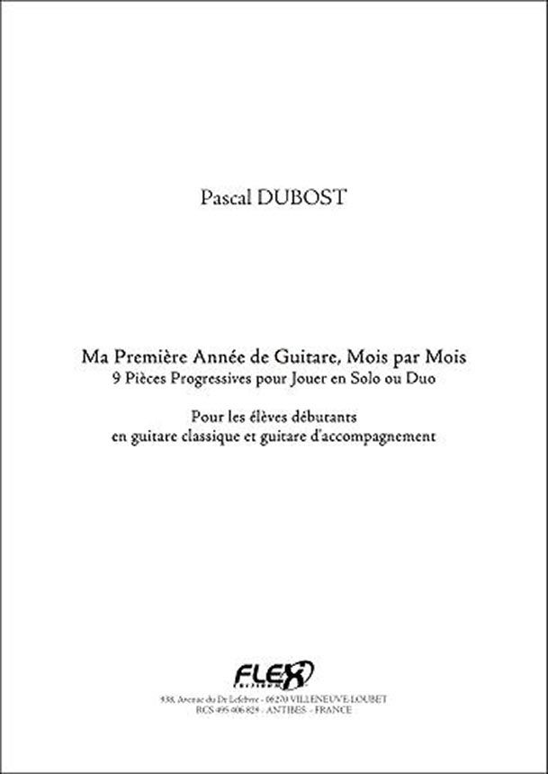 A guitar method proposing 9 progressive pieces, one per month, to play alone or in duet, for beginners