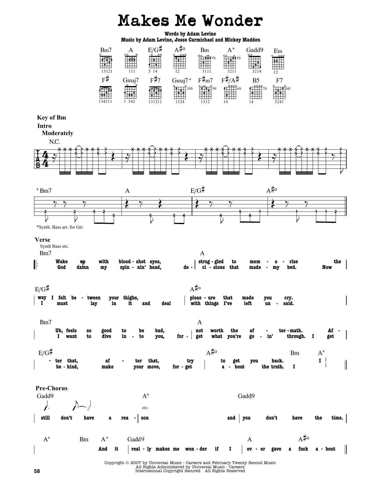- Komponist Mickey Madden, Adam Levine Jesse Carmichael