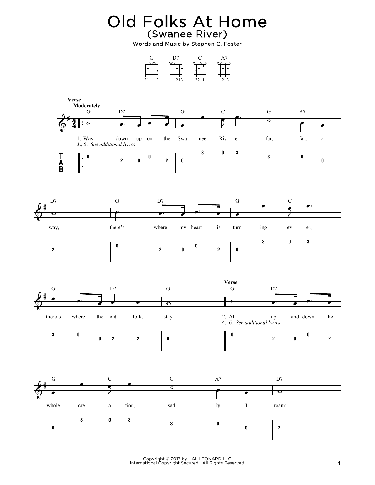 Easy Guitar Tab (Swanee River)