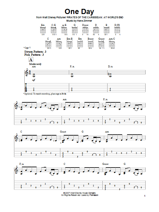 Easy Guitar Tab (from Pirates Of The Caribbean: At World's End)