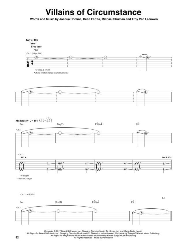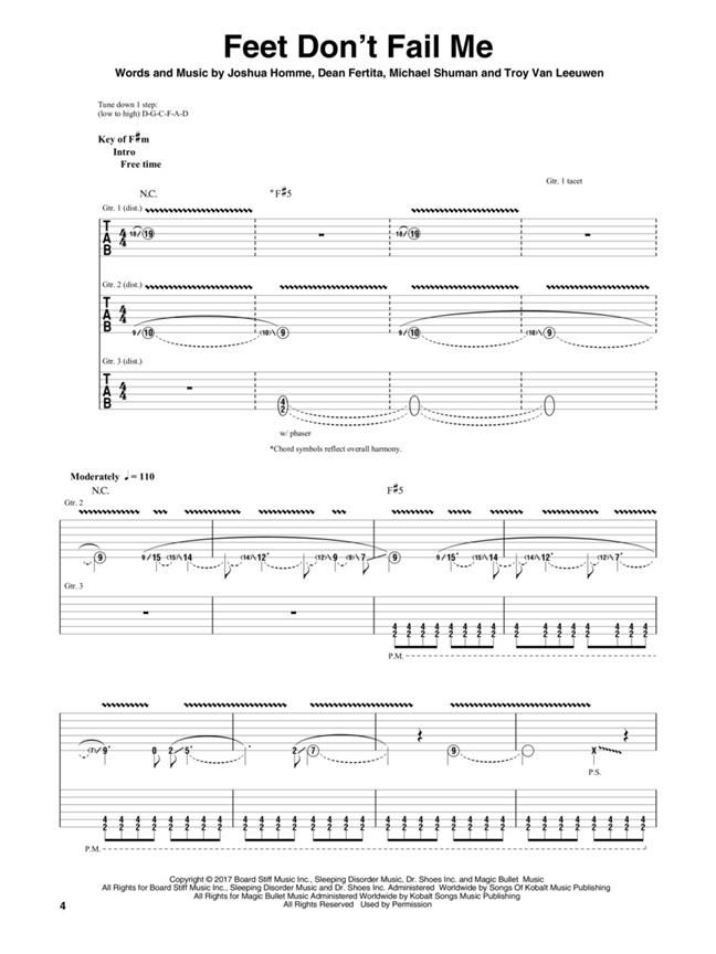 This 2017 album release by this hard rock band reached number 3 on the Billboard 200 album charts and topped the Rock Albums and Alternative Albums chart. This accurate tab edition presents all 9 songs from the album: Domesticated Animals - The Evil Has Landed - Feet Don't Fail Me - Fortress - Head like a Haunted House - Hideaway - Un-Reborn Again - Villains of Circumstance - The Way You Used to Do.