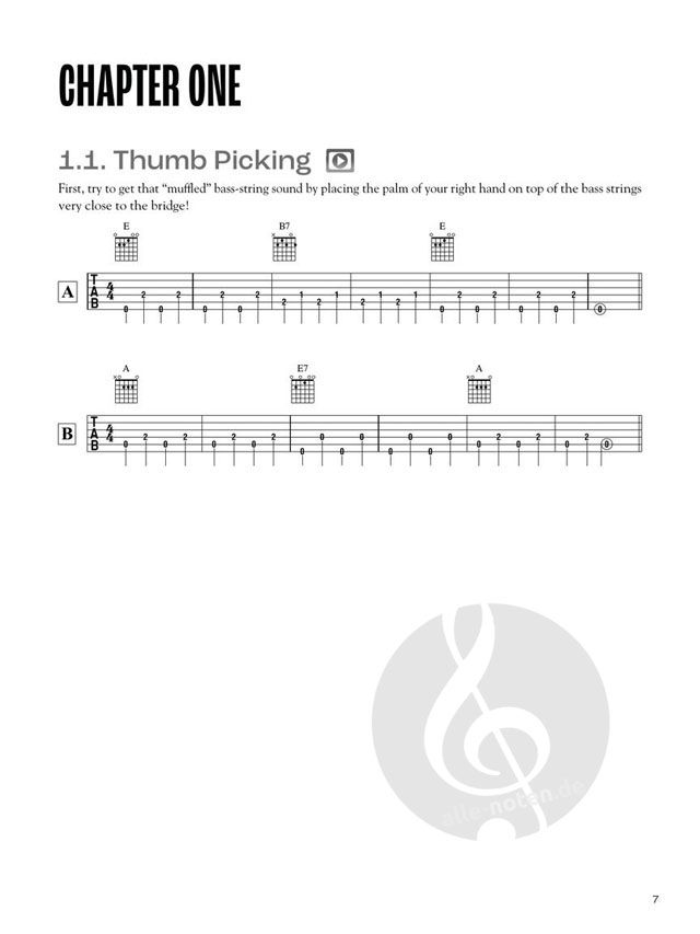 Some of the topics covered: alternating-thumb picking; right-hand picking positions; open chords & moveable chords; adding melody notes to chord shapes; hammer-ons, pull-offs, and slides; licks & turnarounds; syncopation; and more!