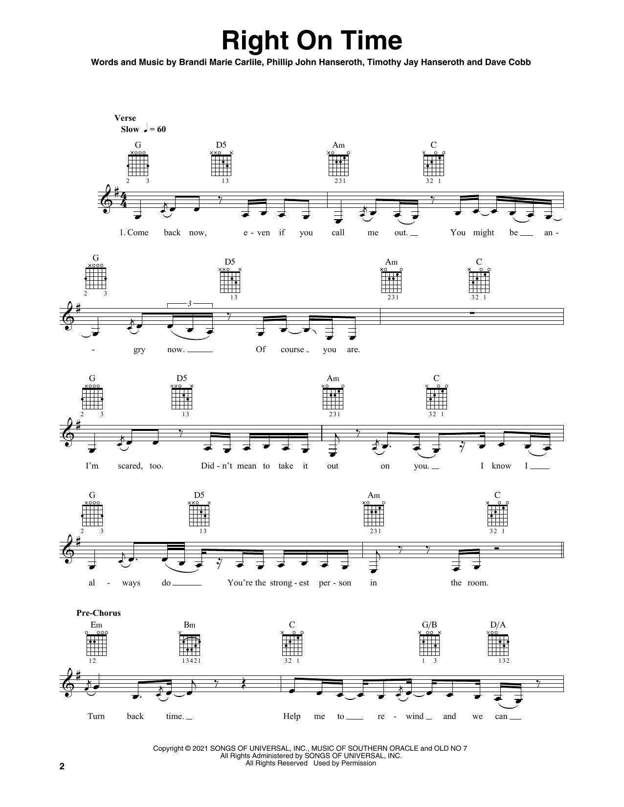 - Komponist Timothy Jay Hanseroth, Dave Cobb, Brandi Marie Carlile, Phillip John Hanseroth