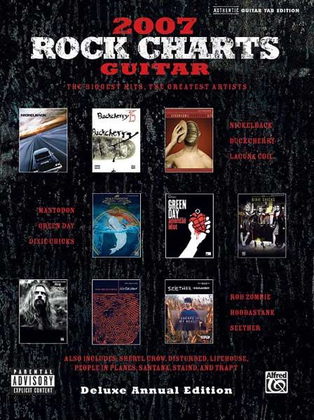 Alfred is pleased to release Rock Charts Guitar 2007: Deluxe Annual Edition. This book features twenty eight of the biggest rock guitar hits of 2006, from artists like Rob Zombie, Buckcherry, Lacuna Coil, Sheryl Crow, Green Day, Nickelback, and many more! Each song has been transcribed in complete note-for-note guitar tablature. Titles