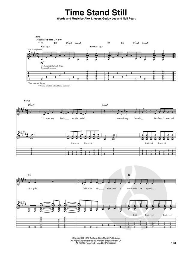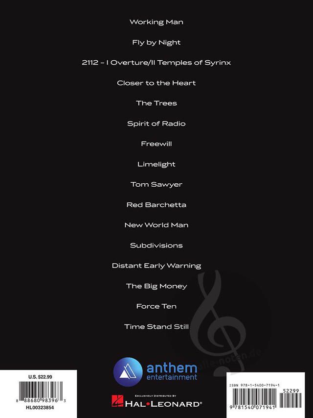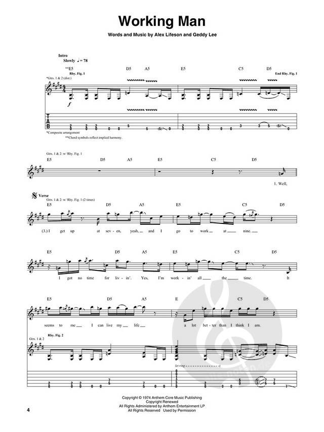 Learn to play 17 Rush classics by studying the note-for-note guitar transcriptions of every note Alex Lifeson played on 17 Rush classics. The transcriptions are presented in notes and tab and also include lyrics.