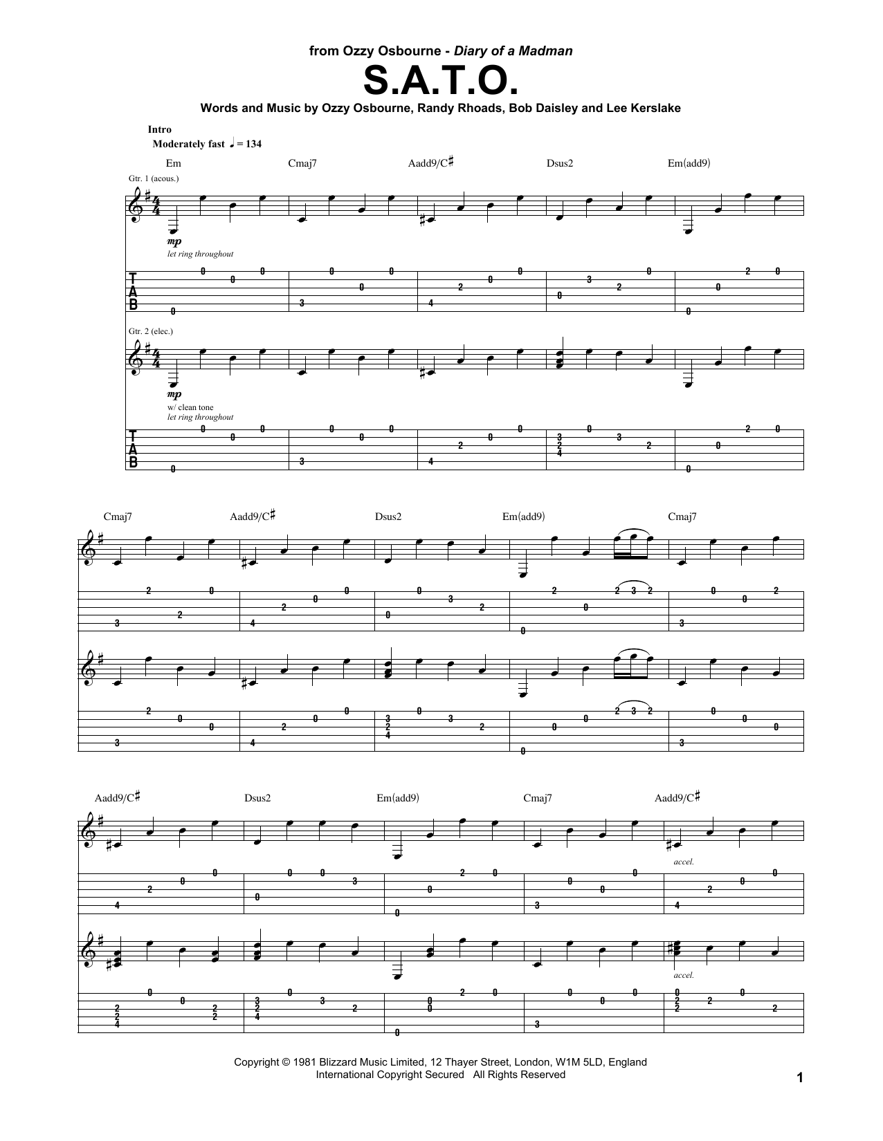- Komponist Randy Rhoads Ozzy Osbourne Bob Daisley Lee Kerslake