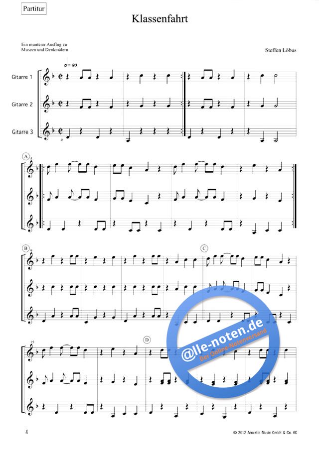 22 Seiten Partitur plus 3 eingelegte Stimmen à 8 Seiten, inkl. CD