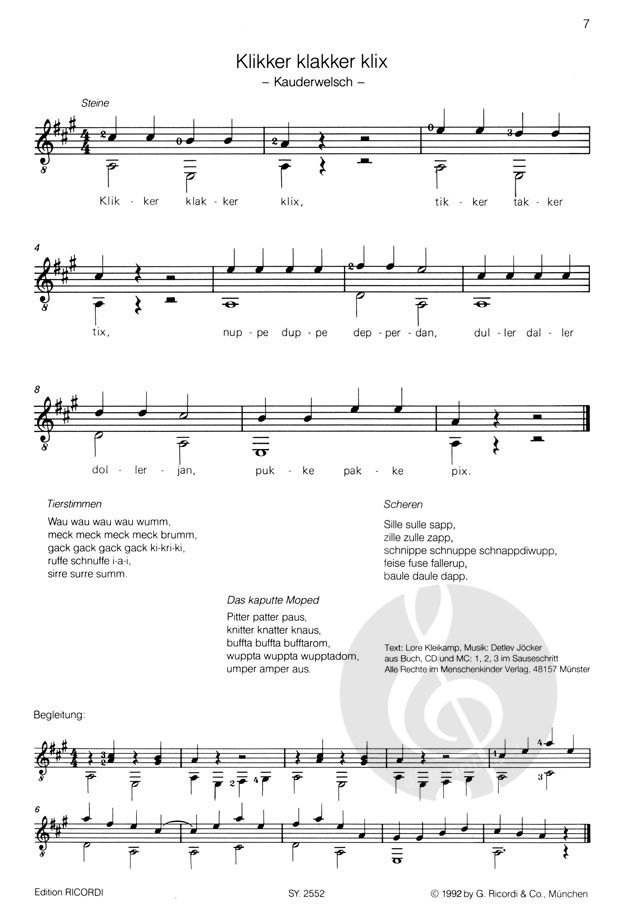 Mit dieser lustigen Liedersammlung können die Kinder beginnen, wenn sie den zweistimmigen Anschlag beherrschen. Wie gross die Gitarre da gleich klingt!
