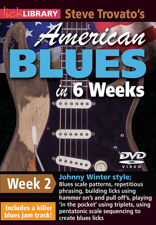Welcome to the American Blues Guitar in 6 Weeks course. These lessons are designed to focus your practice towards realistic goals achievable in six weeks. Each week provides you with techniques, concepts and licks to help you play and understand blues soloing at a manageable easy to follow pace. Week two includes: Blues scale patterns - repetitious phrasing - building licks using hammer ons and pull offs - playing in the pocket - using triplets - using pentatonic scale sequencing to create blues licks. The DVD is presented by Steve Trovato who is best known as a world class country guitarist, but is equally proficient in a wide range of popular guitar styles. He has written a number of bestselling guitar instruction books, and maintains a full time position in the Guitar Department at the University of Southern California.