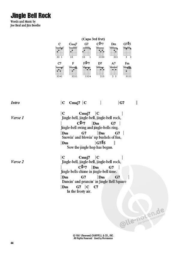 Lyrics, chord symbols and guitar chord diagrams for 40 songs