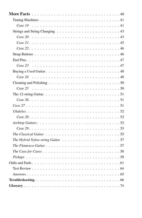 Learn to diagnose common problems relating to the adjustment, upkeep and repair of your acoustic guitar, as well as nylon-string guitars and ukuleles. Topics include: humidity - cracks - braces - bridge plates - frets - guitar action - intonation - neck angle - tuning machines - strings - strap buttons - end pins - buying a used guitar - cleaning & polishing - pickups - and much more.