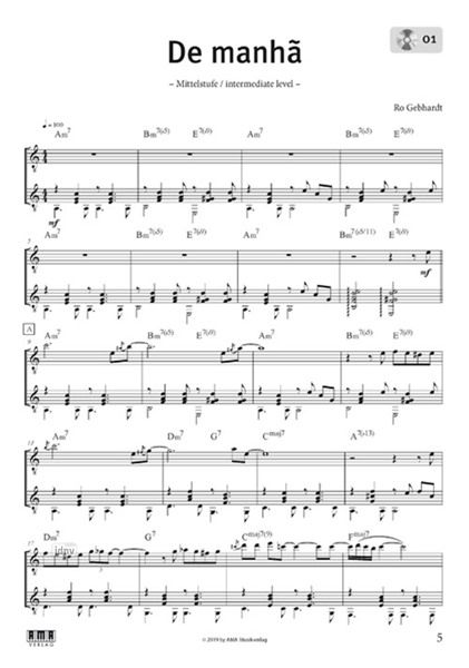 Das zweite Buch 'The Art of Guitar Duo' von Ro Gebhardt zeigt die grundlegenden Gitarren-Techniken, die für die Performance von Bossa Nova, Samba, Pop und Swing-Jazz notwendig sind. Dabei geht es sowohl um die Begleitung als auch um den Aufbau von Solo-Linien und Improvisation. Diese Themen werden anhand von acht konkreten Arrangements demonstriert. Die Stücke in diesem Buch sind also nicht nur zum Studium geeignet, sondern auch zum Einsatz auf der Bühne.