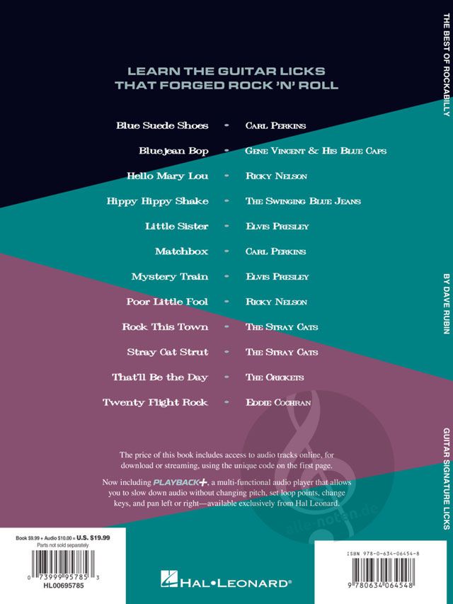 Dave Rubin dissects the best licks from a dozen rockabilly bellringers: Blue Suede Shoes - Bluejean Bop - Hello Mary Lou - Hippy Hippy Shake - Little Sister - Matchbox - Mystery Train - Poor Little Fool - Rock This Town - Stray Cat Strut - That'll Be the Day - Twenty Flight Rock. Learn the guitar licks that forged rock'n'roll!