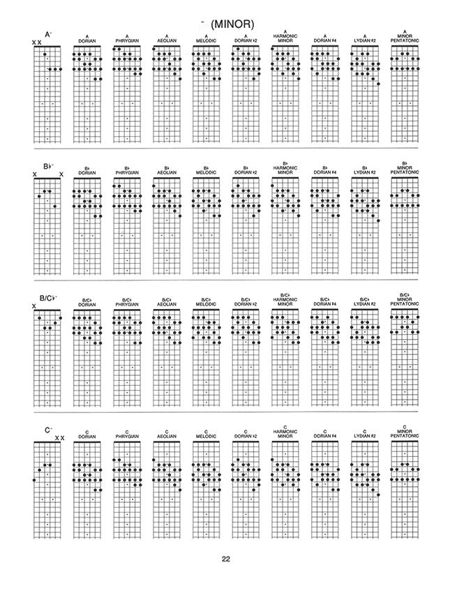 The most complete book on chords and voicings ever written. An encyclopedia with over 6,000 diagrams, charts and graphs detailing the harmonies of the diatonic modes and their variants all over the fretboard. Complete explanation of all extended harmonies and altered chords. The essential volume for every guitarists library.