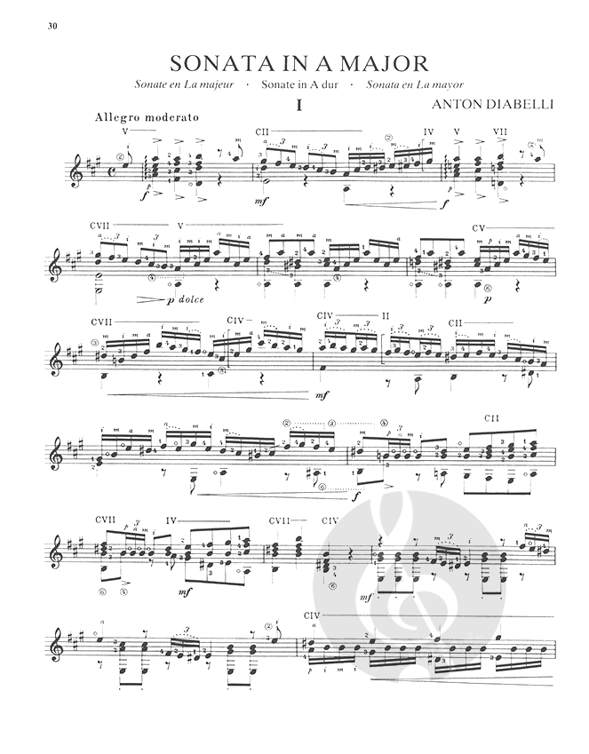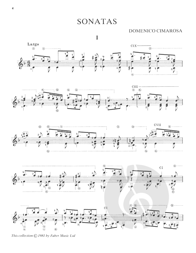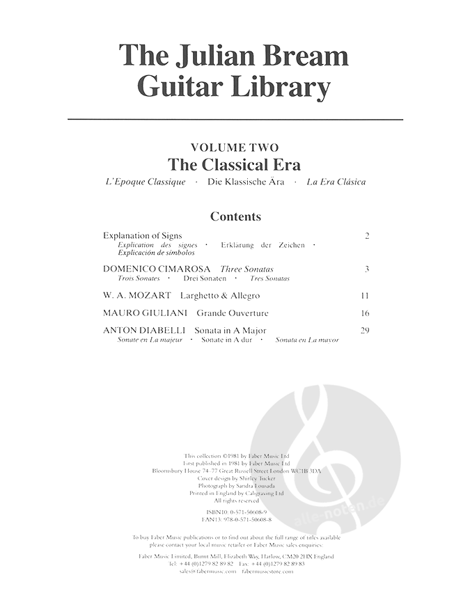 The Julian Bream Guitar Library 2: The Classical Era contains works by Mozart, Cimarosa, Giuliani and Diabelli scored for classical guitar together with a reference guide to the symbols used.