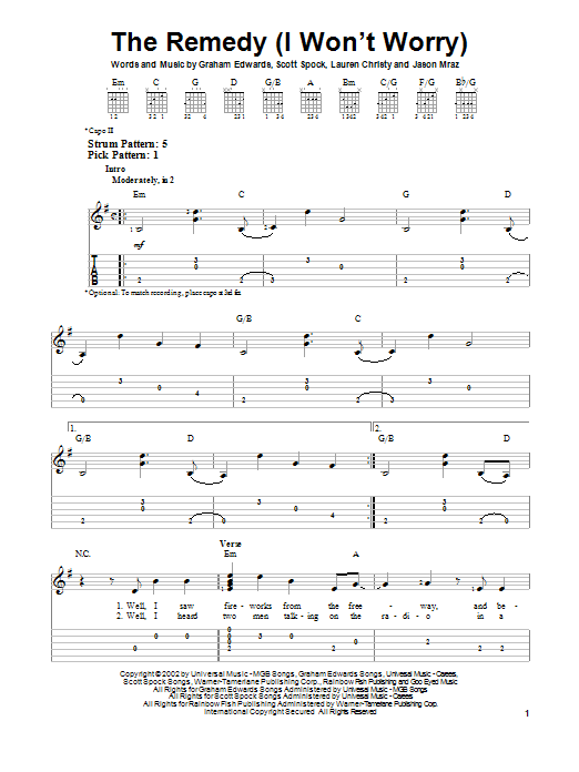Easy Guitar Tab (I Won't Worry)