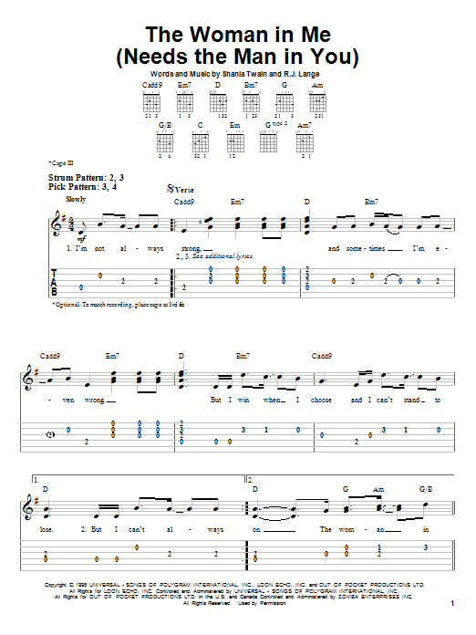 Easy Guitar Tab (Needs The Man In You)