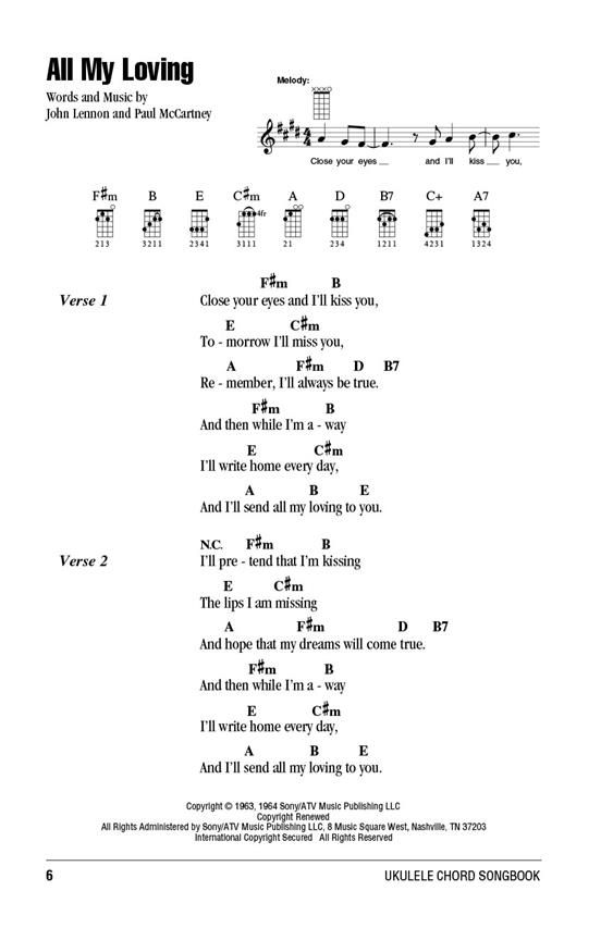 The Beatles Ukulele Chord Songbook comes in convenient 6'' x 9'' format with complete lyrics and chord symbols above the lyrics for dozens of hits from the Fab Four!