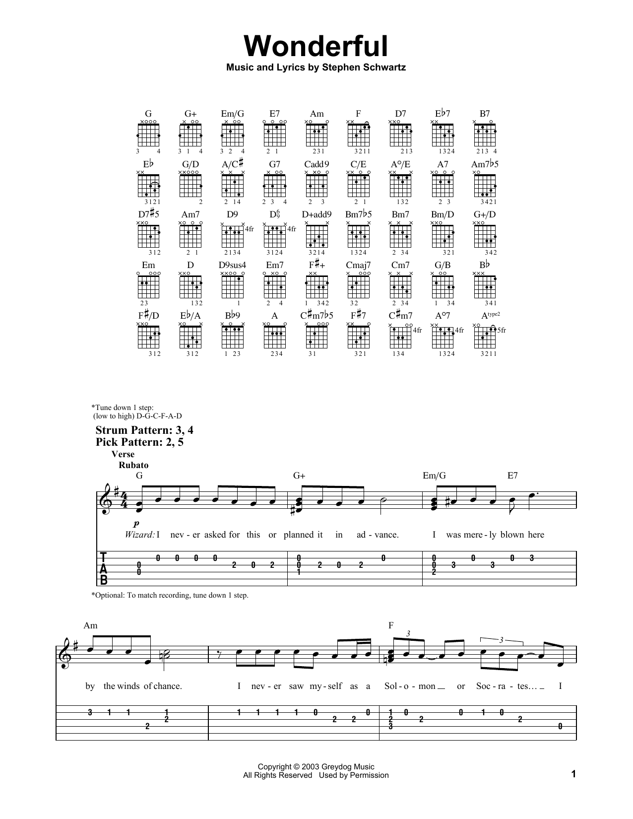Easy Guitar Tab (from Wicked)
