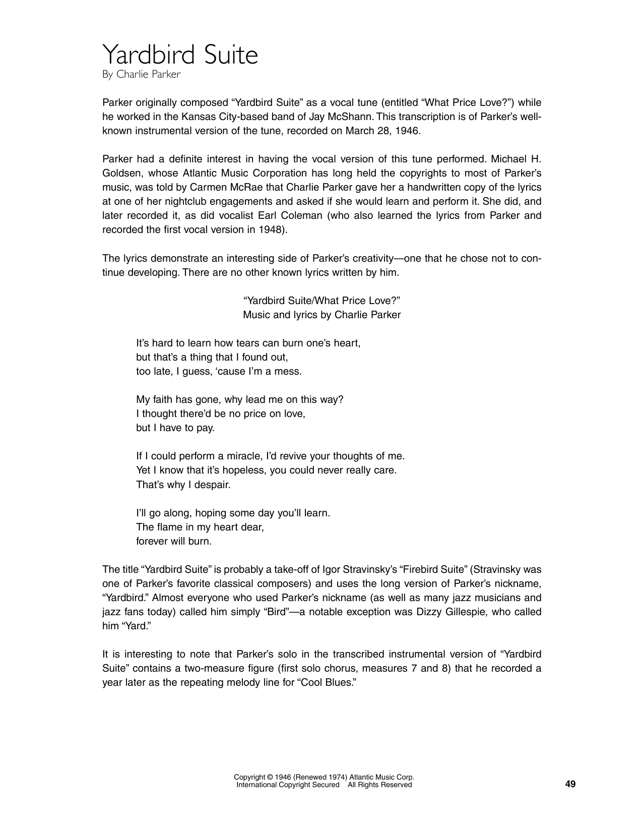 - Interpret Charlie Parker