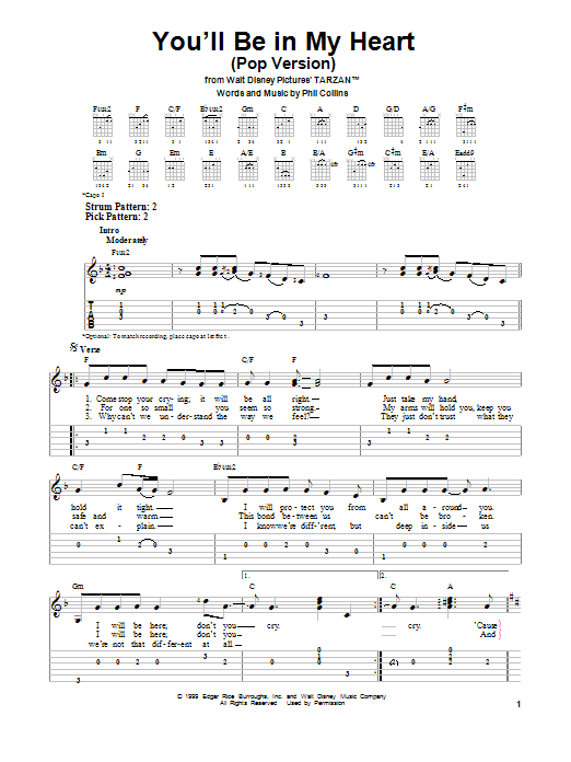 Easy Guitar Tab (Pop Version) (from Tarzan)