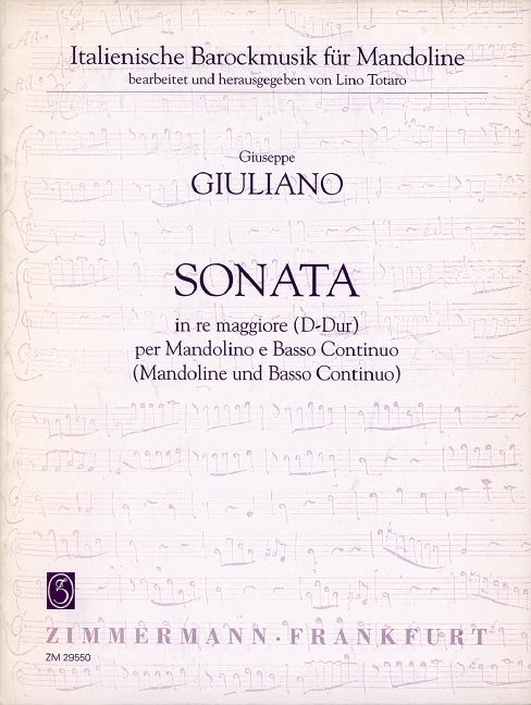 Sonata di Mandolino e Basso Continuo in re maggiore (D-Dur) Die Reihe ''Italienische Barockmusik für Mandoline'' will italienische Meister des 18. Jahrhunderts bekannt machen, deren Werke lange Zeit unveröffentlicht geblieben sind. Der Cembalist und Leiter des ''Ensemble Baroque'' in Turin, Lino Totaro, hat für diese Reihe Stücke mit lebendigem Ausdruck und Erfindungsreichtum entdeckt und ausgewählt.
