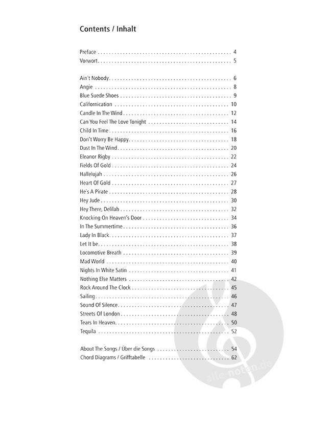 - Noten mit Tabulatur und Online Audio