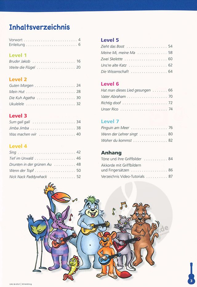 Die Ukulelenschule für Kinder bietet: > 88 bunte, durchgehend illustrierte Seiten > farbige Griffbilder und Akkordsymbole > über 25 kindgerechte Lieder zum Begleiten > leichte zweistimmige Spielsätze...