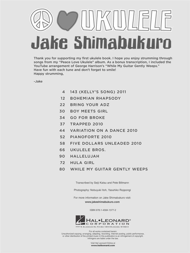 21 Jackson hits arranged brilliantly for ukulele: Bad - Beat It - Ben - Billie Jean - Black or White - Don't Stop 'Til You Get Enough - Man in the Mirror - Rock with You - Smooth Criminal - Thriller -...