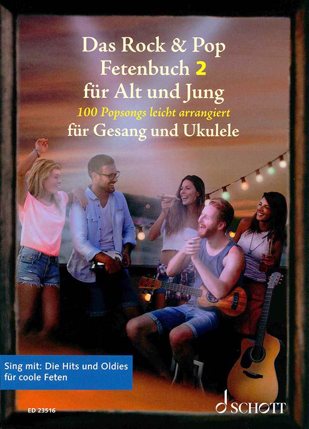 Nach dem erfolgreichen 'Rock & Pop Fetenbuch' hat Sebastian Müller 100 weitere Klassiker und neuere Hits ausgewählt, die sich gut zum singen eignen und hat sie so bearbeitet, dass sie sich auf der Ukulele auch leicht begleiten lassen. Mit beliebten Oldies aus den 60er Jahren von Elvis Presley, den Beatles oder Simon & Garfunkel bis hin zu aktuellen Hits von Ed Sheeran, The Weeknd, Camila Cabello oder Taylor Swift enthält der Band Lieder, die jeder im Ohr hat und die zu singen viel Spaß macht. Allen Songs vorangestellt sind die benötigten Akkordgriffe sowie die Schlagmuster für die Begleitung. Eine Playlist mit allen Songs gibt es bei Spotify (100 Rock & Pop Fetenhits 2 für Alt und Jung). Unter dem gleichen Titel ist auch ein Songbook für Gitarre erschienen.