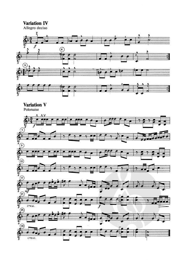 Stets ist das Thema deutlich erkennbar. Die teils traditionellen, teils modernen Variationen erscheinen in unterschiedlichen Tempi und sind teils orchestral, teils kammermusikalisch angelegt. Sehr abwechslungsreich! Leicht bis mittelschwer spielbar, gelegentliches Lagenspiel in M1, Gitarre Akkord- und Melodiespiel. 7'. (Hrsg.: Wölki).